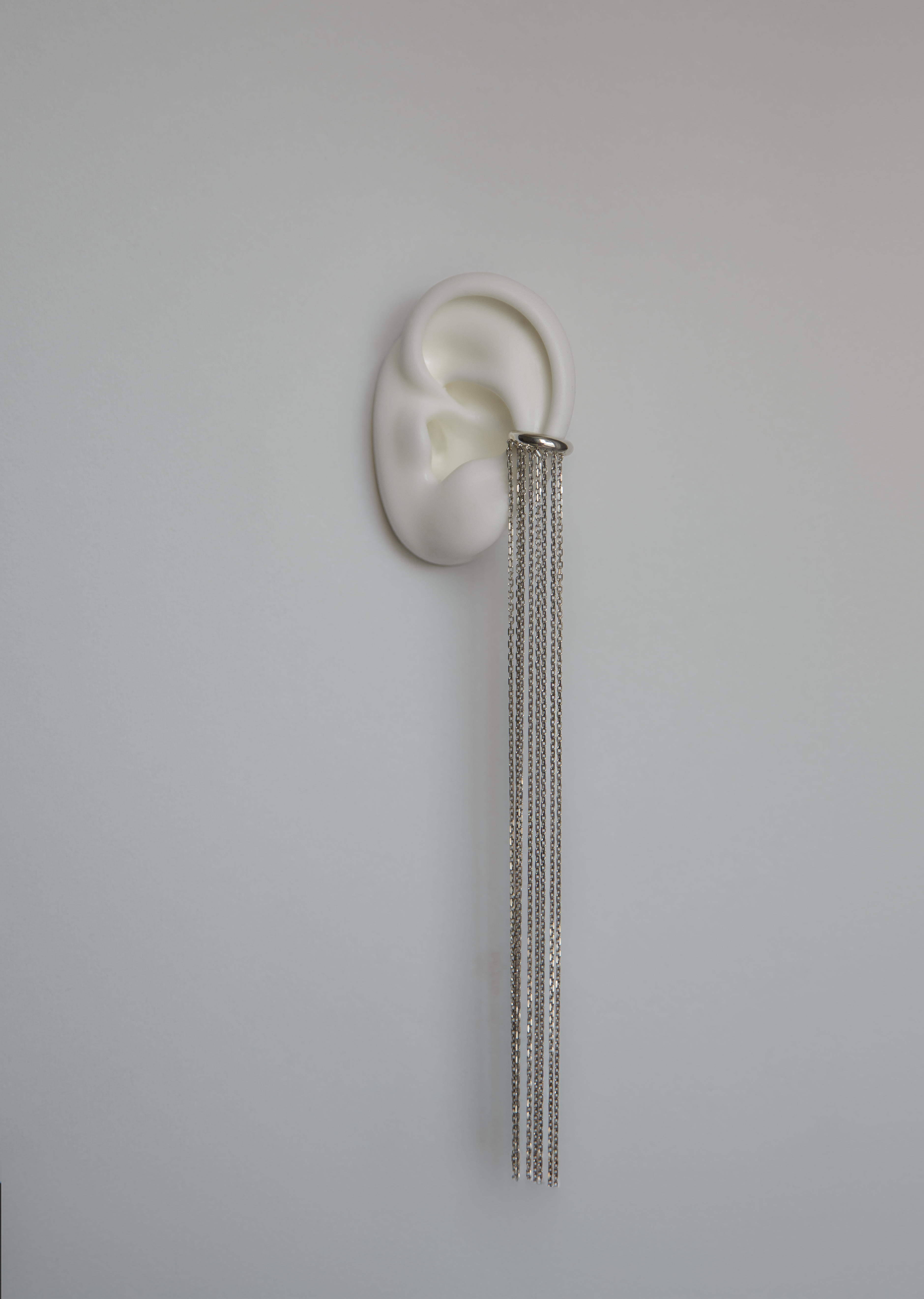 A silver cuff will help to complete the look, and the chains will add dynamics and mobility to it and at the same time tenderness. Wear it as an accent element or combine it with other jewelry.